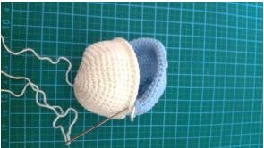 1ª carreira: tricotar 4 pb no anel mágico (4 pb). 2-8 carreiras: 4 pb toda a volta (4 pb).