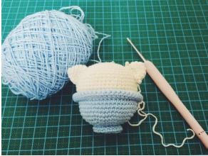 Deixe um pedaço de linha, jogue-o sobre o gancho, puxe-o pelo laço e finalize. Prenda as orelhas na cabeça. Prenda o gatinho dentro da chícara.